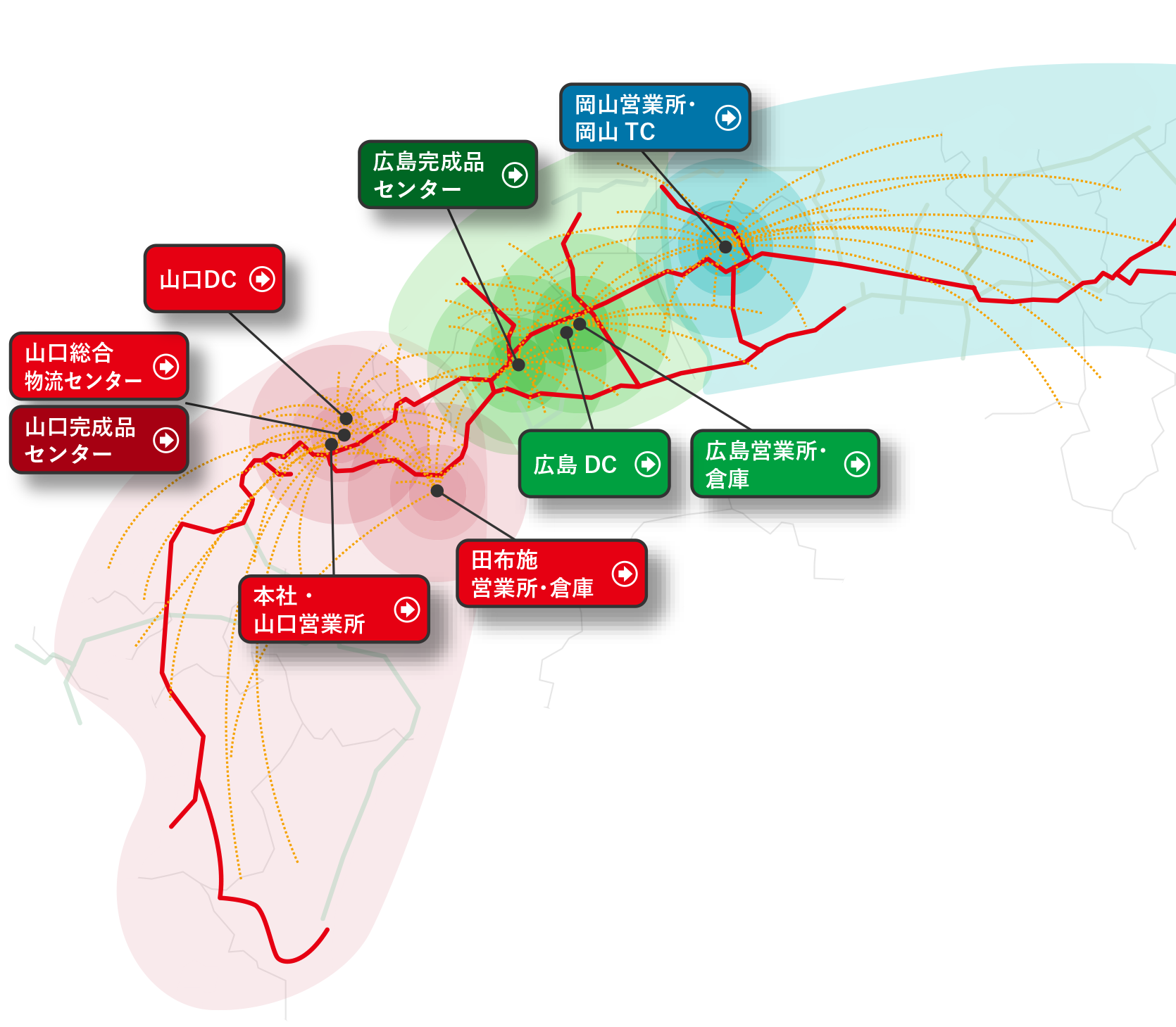 関西・北陸から九州南部までをカバーする物流網を構築して参りました。