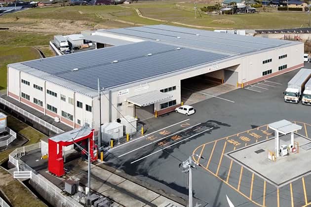 - 山口総合物流センターに大規模な太陽光発電システムを導入し、2013年6月より稼働しています。CO2を排出しない再生可能エネルギーで地球環境に貢献するため、新社屋にも設置してCO2削減に引き続き取組みます。