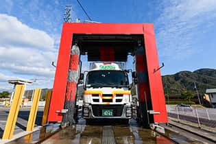 トラック用洗車機を導入して洗車作業を自動化することで、社員の労働時間短縮を図っています。車両の汚れや付着物を頻繁に細かいところまで除去することにより、車両の耐用年数の長期化も期待できます。
