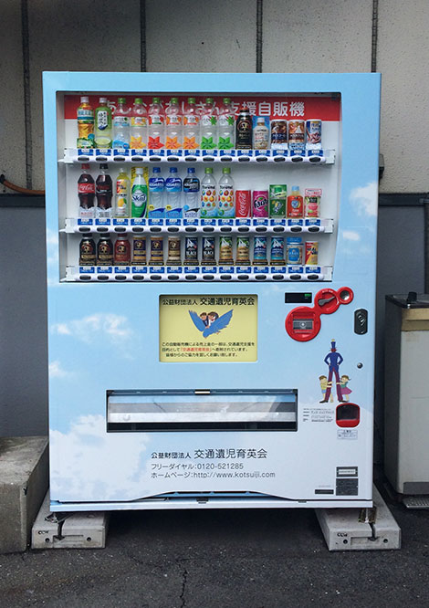 募金型自動販売機は、父母等が交通事故が原因で経済的に就学が困難になったお子様を 支援する仕組みです。