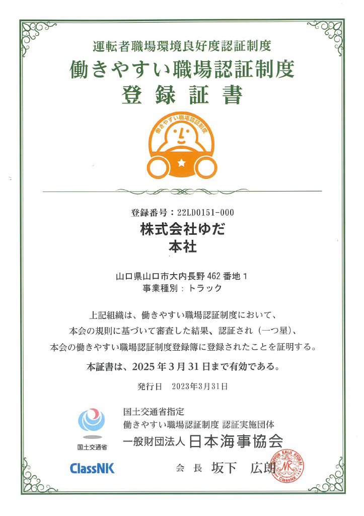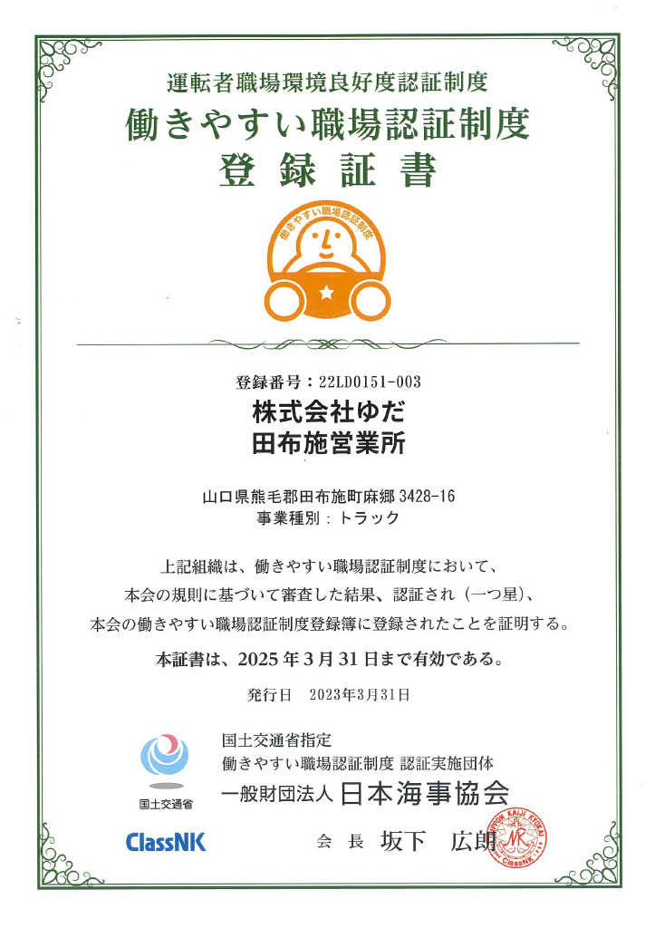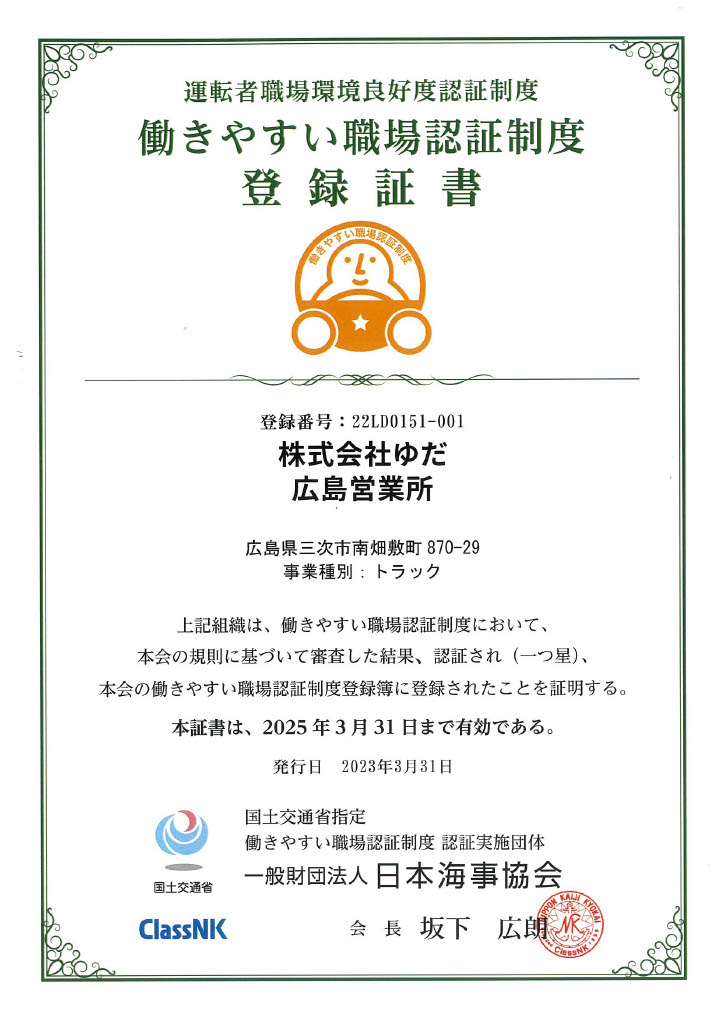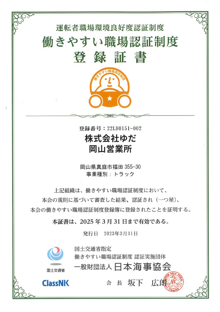 働きやすい職場認証(正式名称 運転者職場環境良好度認証制度)