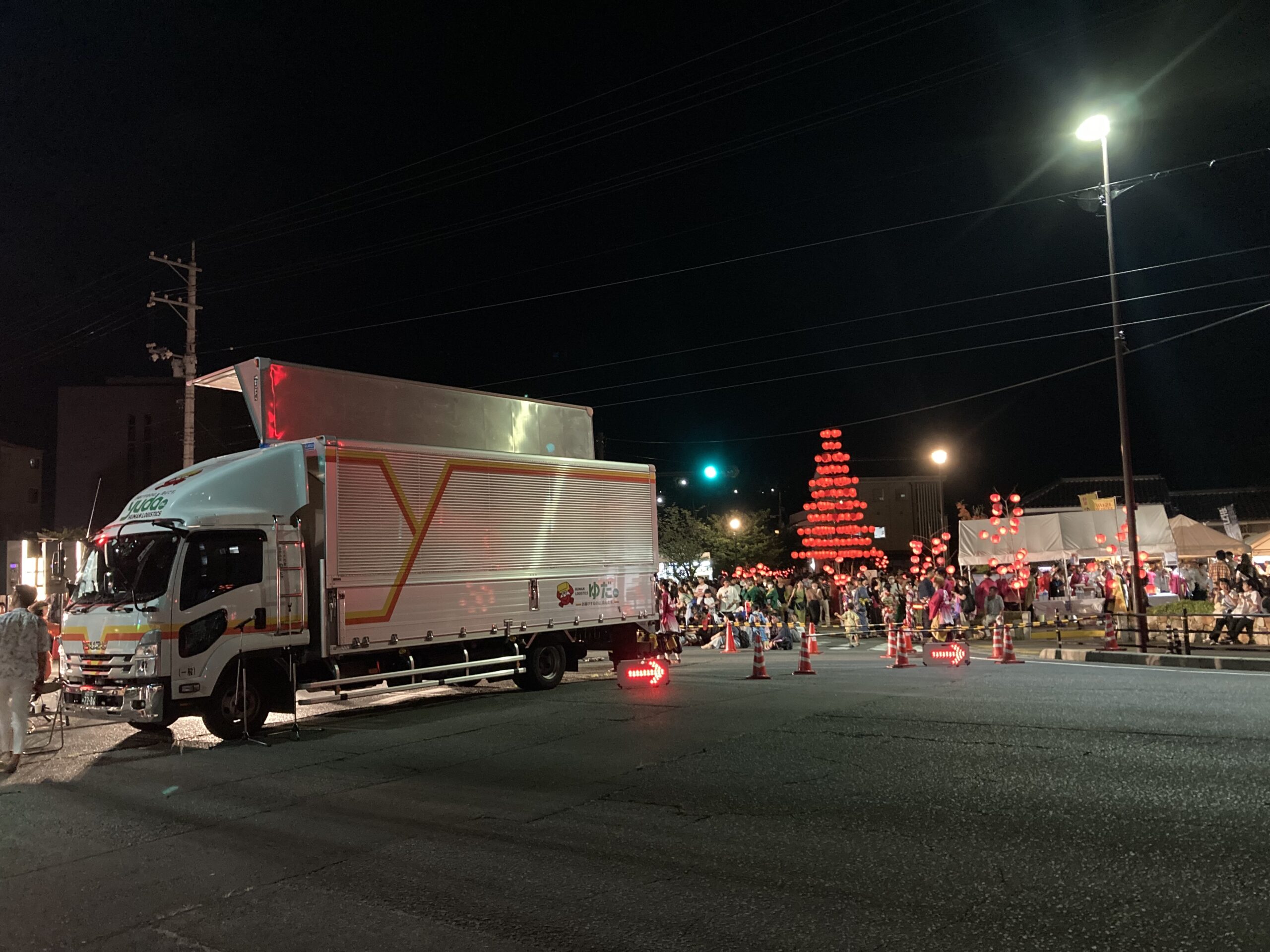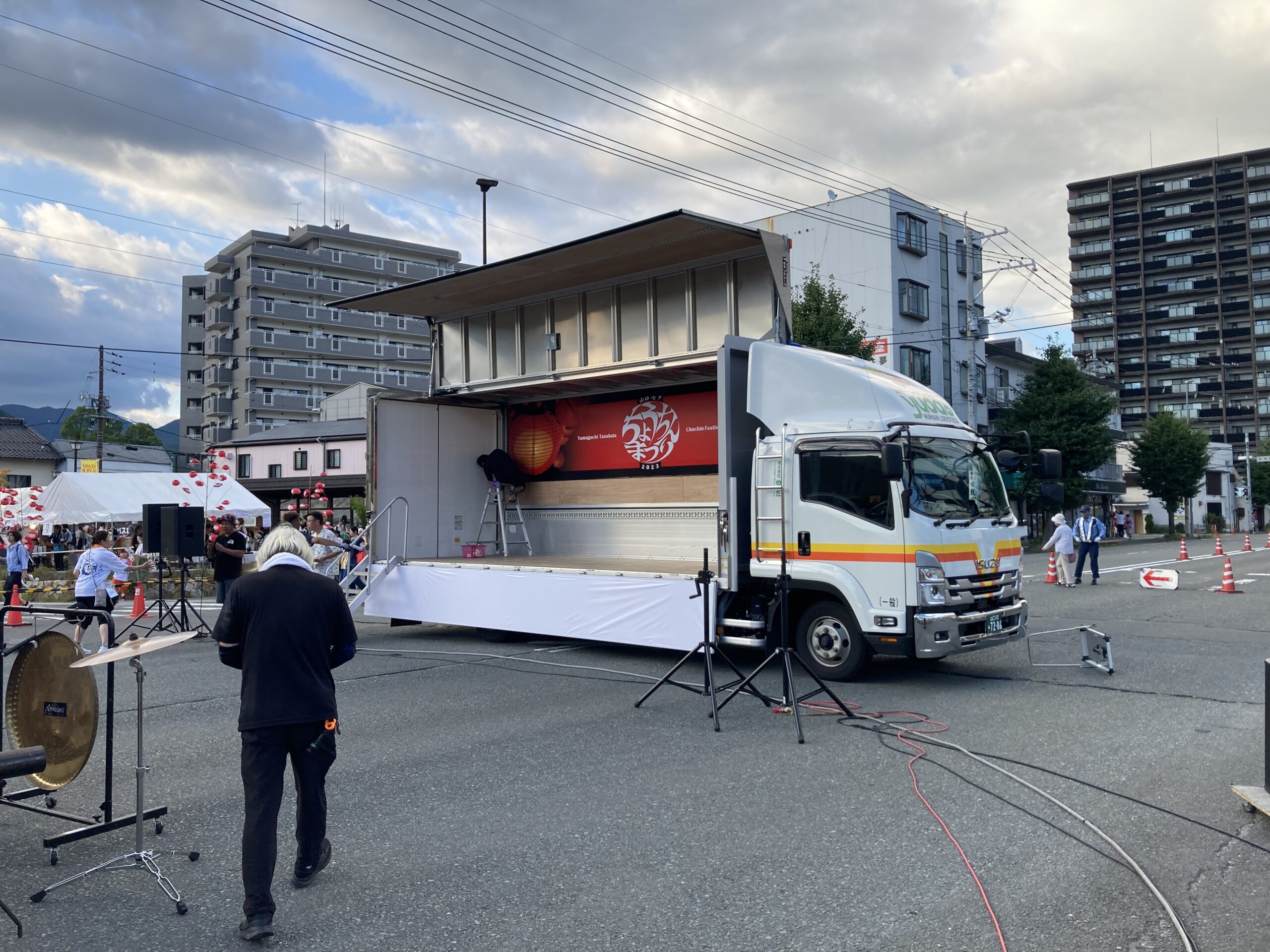弊社は昨年に続き、お祭りへの協賛とステージカー貸出という形で参加させて頂きました。ステージ上では和太鼓やダンスパフォーマンスが行われ、大変な賑わいでした。