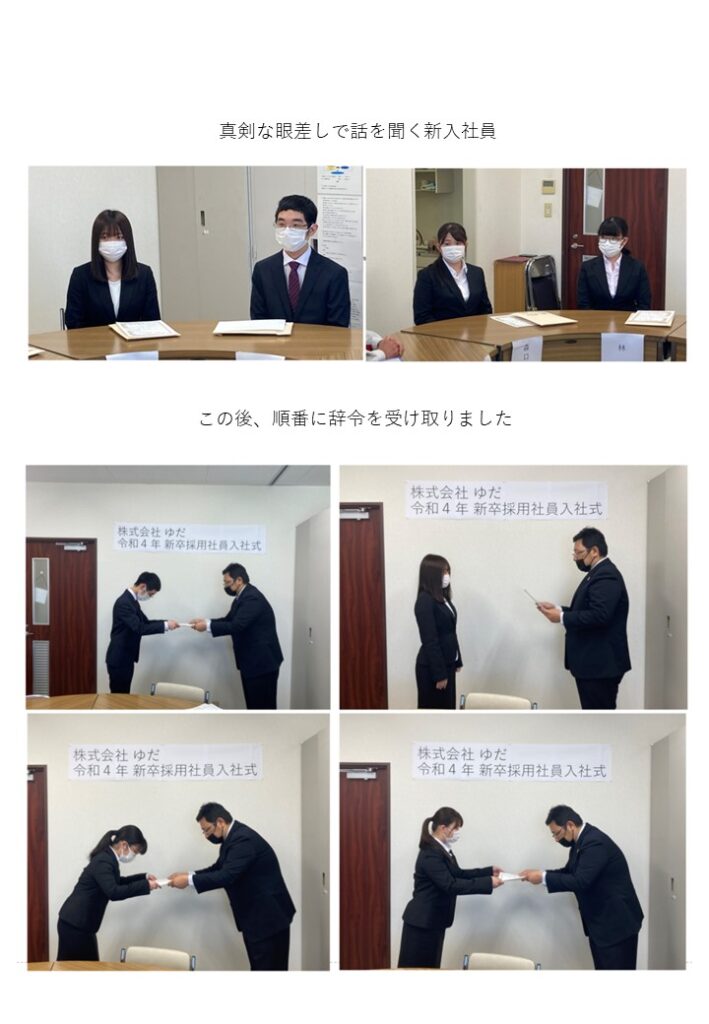 令和4年4月1日 ㈱ゆだ 新卒採用社員入社式を執り行いました。