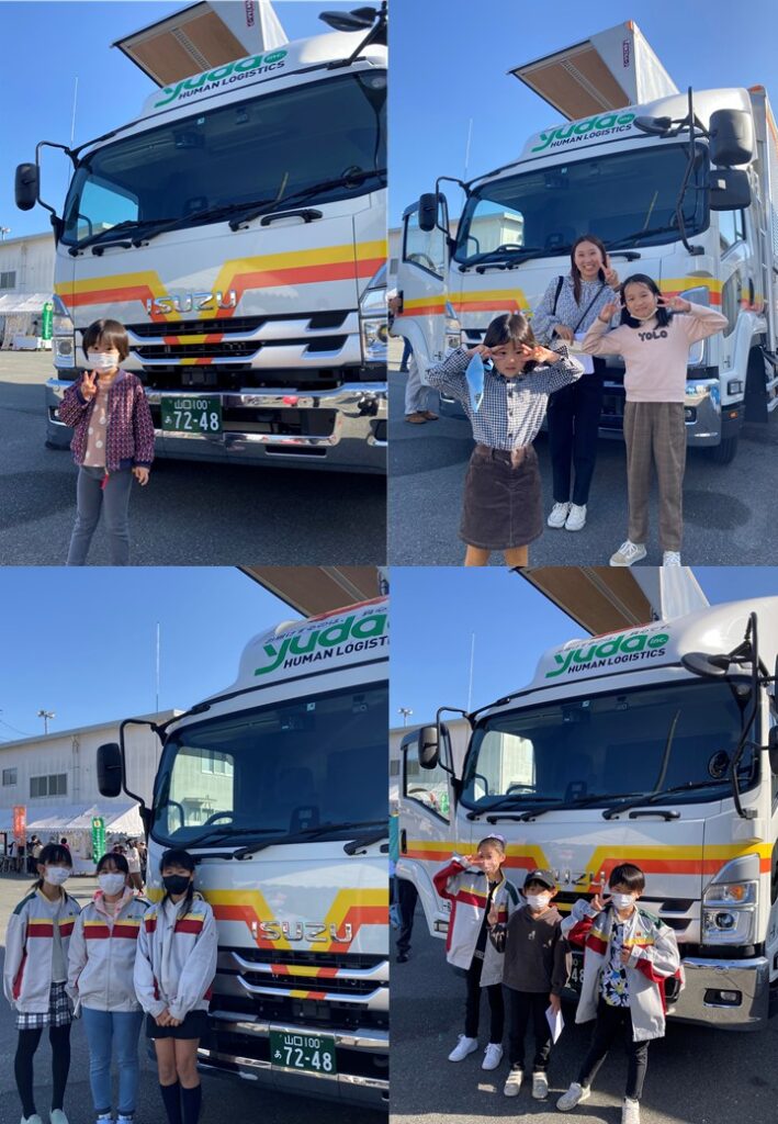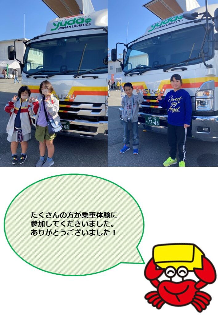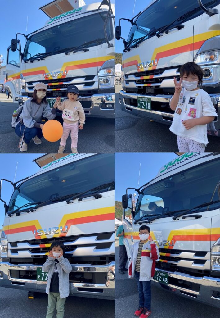 当日は、ステージカーとしてご利用いただいた4tトラック運転席への乗車体験や(株)ゆだの取組をパネルにて紹介し、たくさんの人に立ち寄っていただきました。
