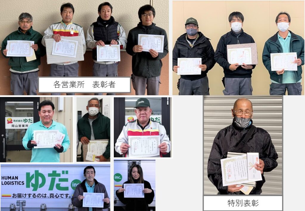 冬の社員表彰は安全衛生優良社員表彰のみとなっており、全営業所から合計12名の社員が表彰されました。